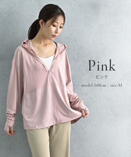 ラッシュガードレディース日焼け防止パーカーUPF50+UVカット体型カバー秋フード付きつば付き長袖接触冷感冷感涼感ミドル丈紫外線対策日焼け対策指穴ML薄手無地羽織軽量速乾通気性レジャーj20033