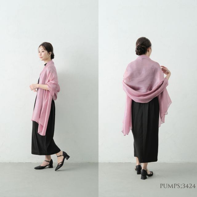 幅約100cm×長さ約200cmのゆったりサイズ。気になる二の腕や背中をしっかりカバーしつつ、軽やかな印象を崩しません。前で結んだり、肩にかけたり、アレンジも自在です。