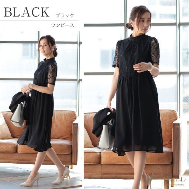 ボトルネックワンピースジャケットスーツレディーススーツ2点セットジャケットワンピースレースシフォンペプラムノーカラーVネックフレア黒ネイビーベージュ