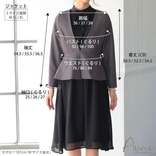 ペプラムシルエットが綺麗にでて、きちんとエレガントに着ていただけます。