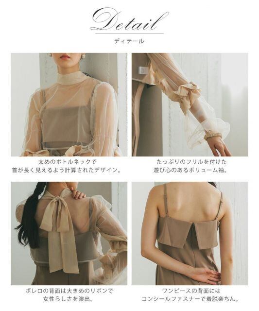 チュールボレロコクーンドレス結婚式ワンピースレディースオケージョンパーティードレスロングボレロ透け感リボンタイトセミタイトボリューム袖袖ありフリル個性的