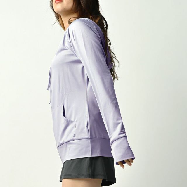 ラッシュガードレディースパーカーカンガールポケットおしゃれ水着q-maxUV春夏接触冷感Q-max0.2新作入荷軽量素材親指が通せるフィンガーホール付きフード有りカット長袖LL日焼け止め体型カバー涼感薄め指穴可愛い