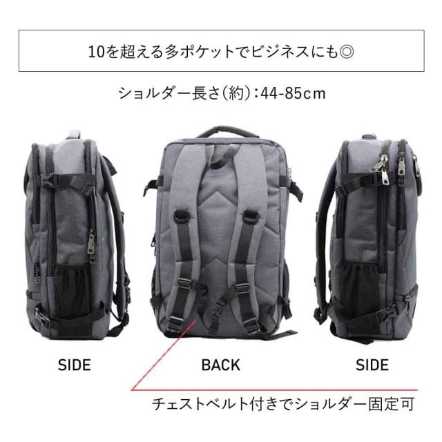 シンプルで洗練されたスクエアデザインは、どんな服装にもマッチし、プロフェッショナルな印象を与えます。ショルダーストラップは調節◎で、長時間の使用でも快適。軽量設計で、長時間背負っても疲れにくいのが特徴です。