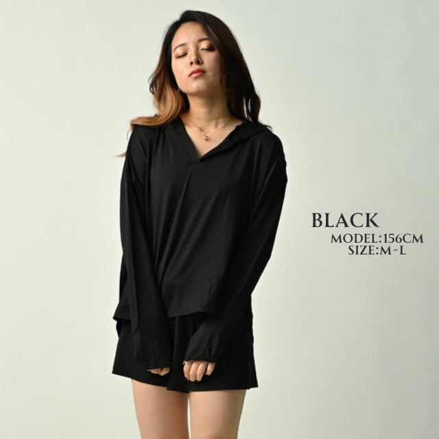商品名ラッシュガードレディース上下セット長袖ショートパンツUVカット大きいサイズパーカー水着トップススポーツウェアUPF50+2025春夏吸水速乾接触冷感Q-max0.2涼感フリーサイズ軽量フィンガーホールフード体型カバー無地ショーパン