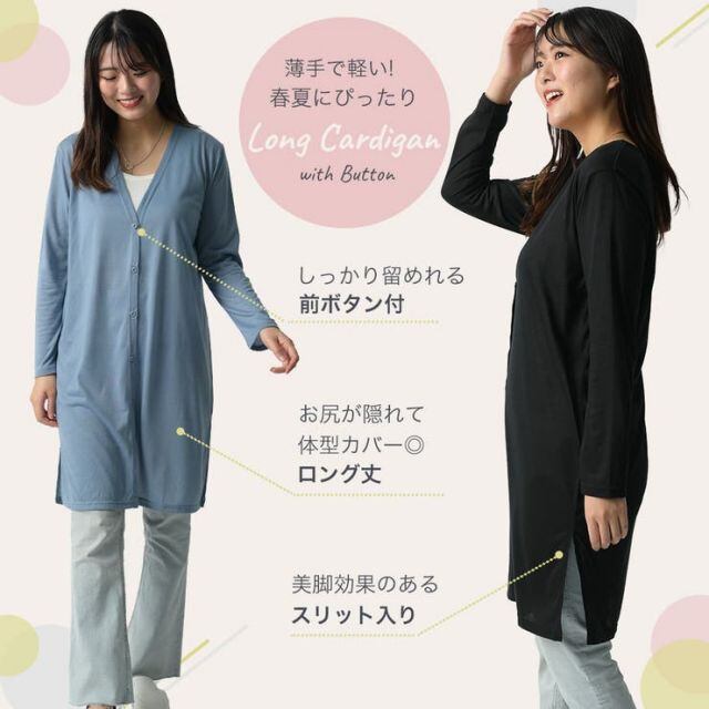 【カーディガンレディースロング丈マキシ丈UVケア無地前開き薄手透け感涼し気きれいめ大人シンプル羽織もの紫外線対策冷房対策日焼け対策カジュアルアウターライトアウター黒白ブルー】