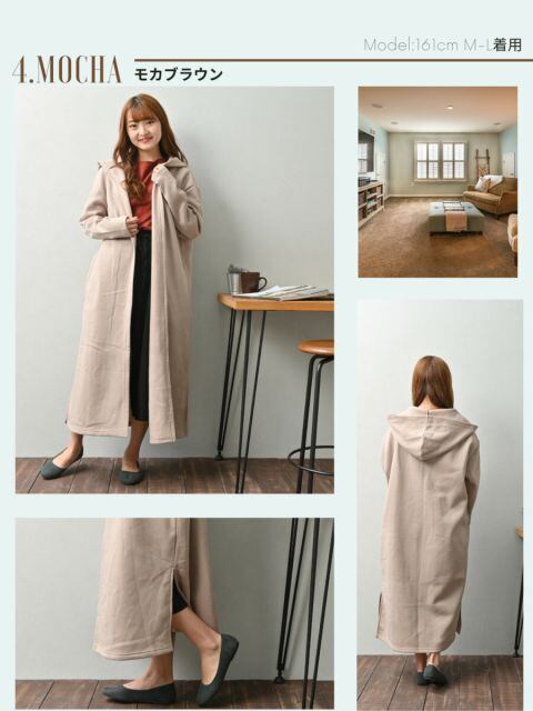 \ポイントUP/ルームウェアレディース裏起毛オーバーロングアウターMLLL3L長袖秋冬ロングカーディガンポケットフード付部屋着マタニティ妊婦大きいサイズ前開き