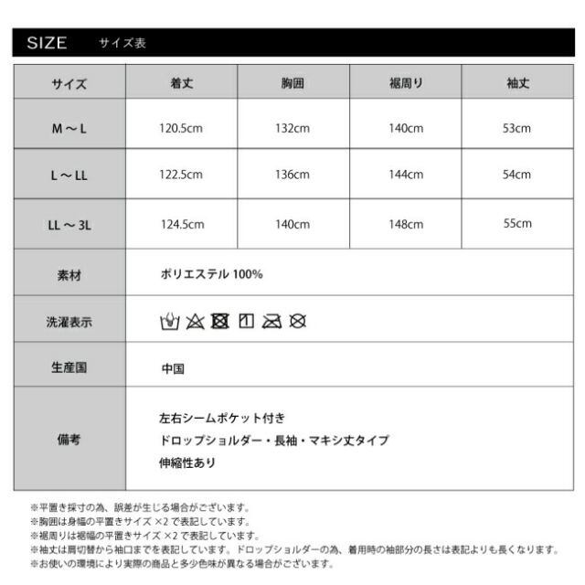 サイズ/寸法(着丈)M-L:120cm/L-LL:120cm