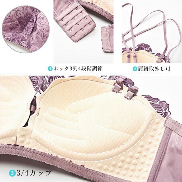 その他商品説明●仕様:3/4カップ、ホック3列4段階調節、肩紐取外し可、ワイヤーなし