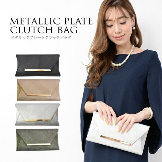 メタリックプレートクラッチバッグレディース女性小さめ結婚式ウエディングパーティ2wayショルダー肩掛けシンプル大人女子可愛いおしゃれ無地