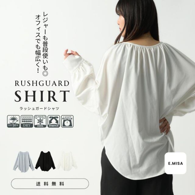 シャツラッシュガードレディース長袖ブラウス衿なし前後2wayワイシャツラッシュガード水着水陸両用おしゃれ大きいサイズ体型カバーUVカットフードなしジップなし可愛いおしゃれ春夏黒白青