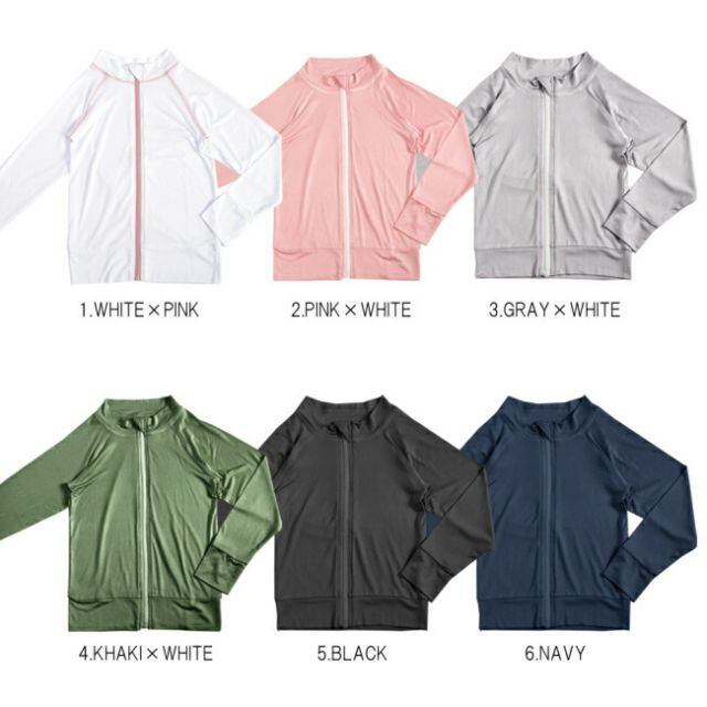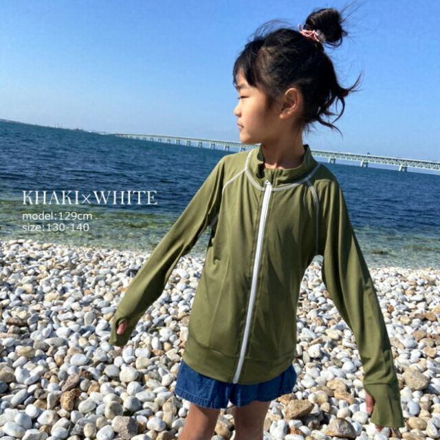 種類8:カーキ×ホワイト/110cm〜120cm 水着 ラッシュガード 中学生 キッズレディース 女の子 男の子 長袖 フードなし 学校 スクール upf50+ ラッシュパーカー UVパーカー スクール水着 小学生 中学生 小学校 プールスイミング 授業用 無地 黒 紺 ブラック ネイビー おしゃれ 最強配送 接触冷感 夏 母の日