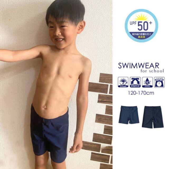 スクール水着キッズ男の子男児プール授業パンツズボンボトムススパッツセミロングネイビーUPF50無地シンプル学校幼稚園スイミング子供UVカットこども水着子ども小学生中学生ジュニア水泳競泳水着プール120130140150160170cm