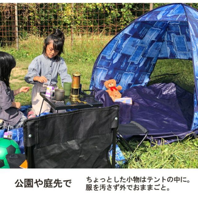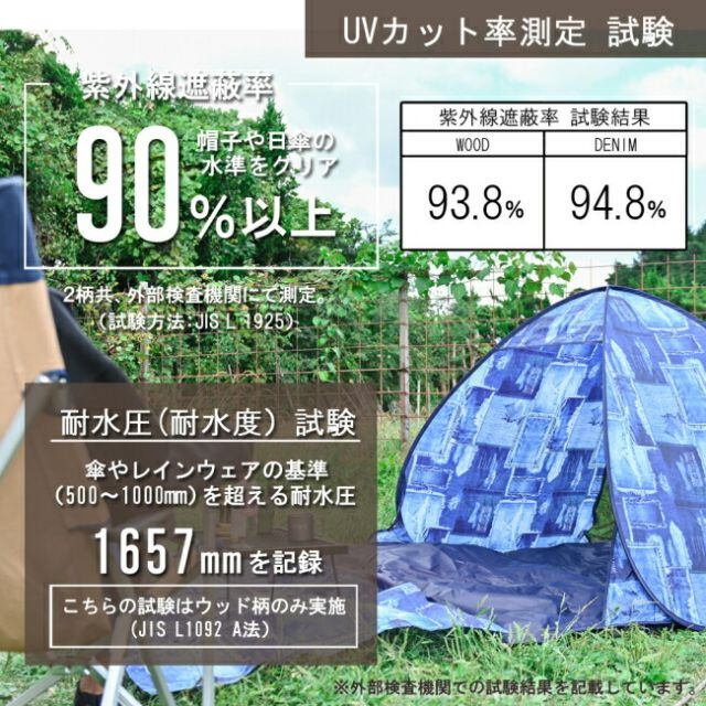 三角型ワンタッチテント5秒簡単設置ウッド柄デニム柄フルクローズ2wayキャンプテント筒型アウトドア人気おしゃれロープペグ