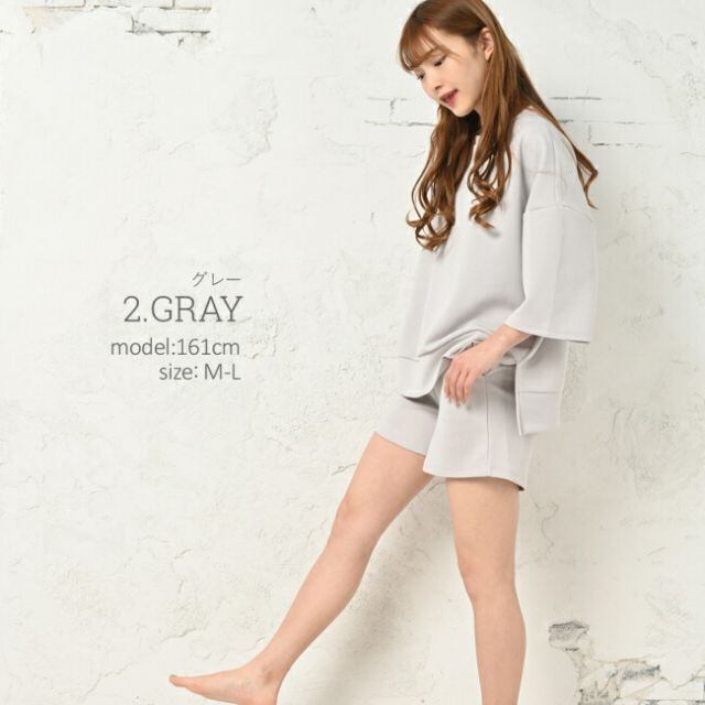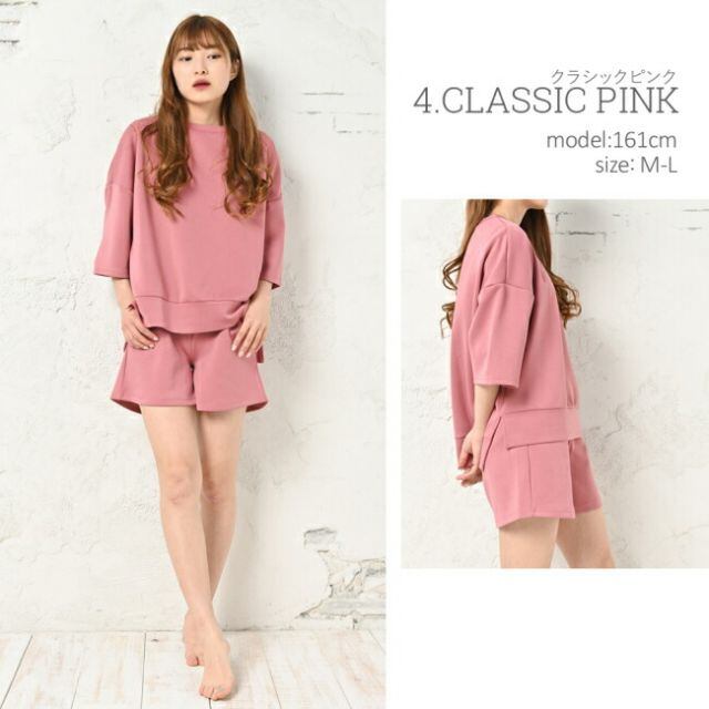 ワンマイルウェアセットアップレディースショーパンショートパンツセットアップパジャマダンボールニットスウェットカットソートップスパンツゆったり可愛い部屋着短パントップス五分袖半袖プルオーバー襟なしクルーネックラクチン