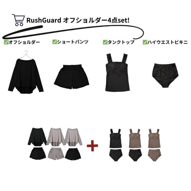 オフショルダー&ショートパンツ&タンクトップビキニのタンキニ水着のラッシュガード4点セットレギンスはオプション注文も◎です!E.Misa