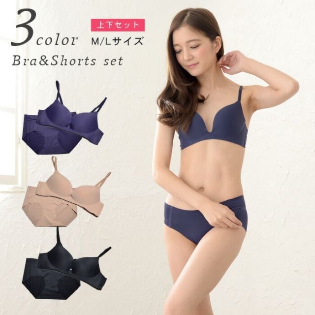 レディース ブラ&ショーツ セット 無縫製 ノンワイヤー モールドカップ メール便不可 母の日