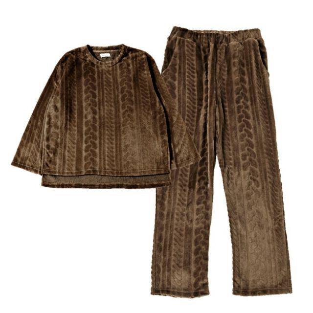 \ポイントUP/ルームウェア上下セットレディースファーフリースセットアップ無地ケーブル柄ボア裏起毛長袖パジャマスウェットプルオーバートップスロングパンツゆったり可愛い部屋着マタニティナイトウェアワンマイルウェア秋冬大きいサイズ