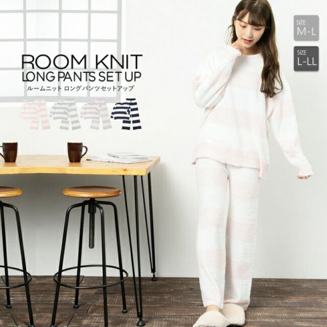 ルームウェアパジャマボーダーニットプルオーバー上下セットセットアップワイドパンツセット部屋着レディース可愛い暖かいルームニット大きいサイズワンマイルウェアルームウエアマタニティ【ラッピング可】