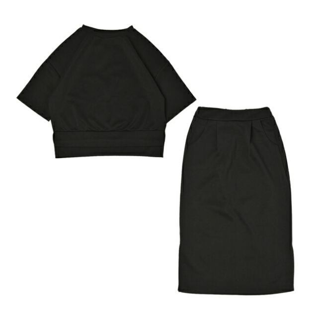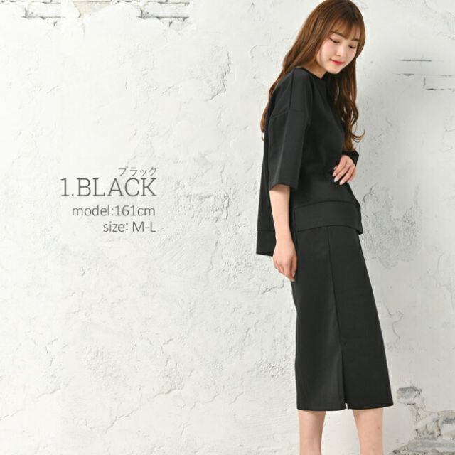 ドロップショルダー&スリット入りミモレスカートでゆったりリラックス♪