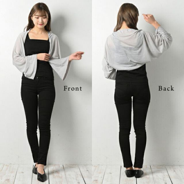 腰周りや二の腕をカバーしてくれます。バッグスタイルもスッキリ軽やか♪