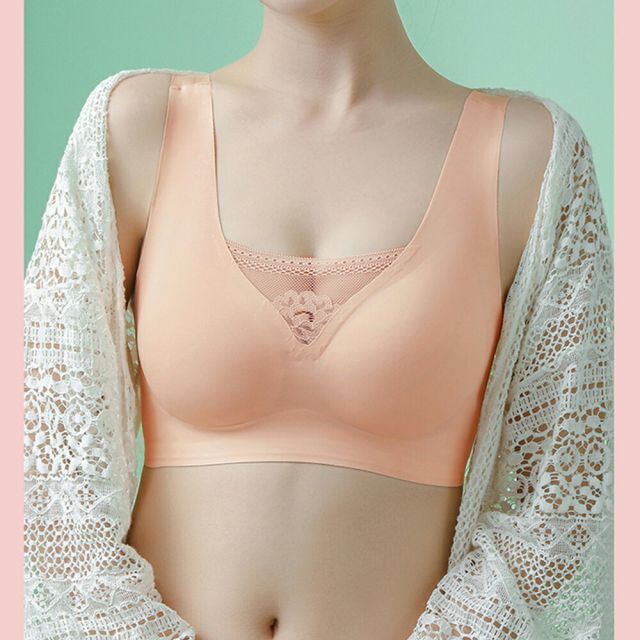 レディース盛れるスポーツブラシームレスナイトブラカップ付き脇高ブラ幅広ストラップレース下着インナーウェア